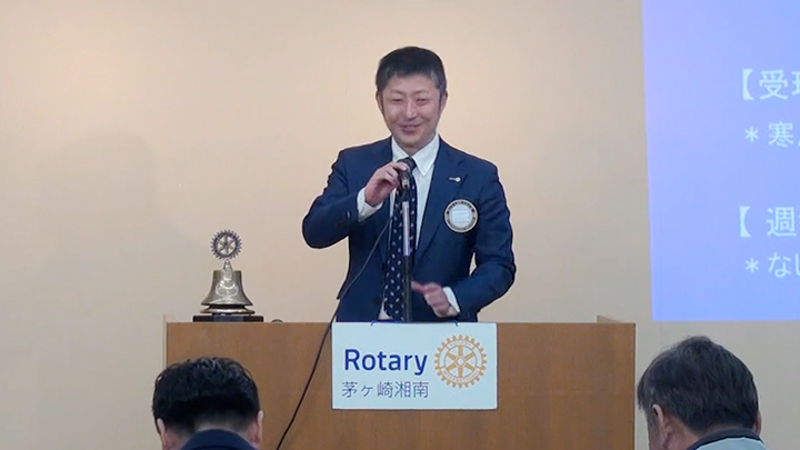 ・ポン友でもある田邉君、入会おめでとう。一緒に活動できること楽しみです。本日の卓話を担当します。よろしくお願いします。色々なイベント等に対して出欠の返事が滞っていることに非常に残念に思ってます。